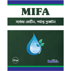 আধুনিক পদ্ধতিতে গুণগত মানসম্মত মৎস্য উৎপাদনে মীফা একটি অনন্য ও কার্যকর পণ্য। মীফা’তে রয়েছে শতভাগ প্রাকৃতিক স্পিরুলিনা, যা মূলত একটি নীল-সবুজ শৈবাল। এটি পুষ্টি উপাদানের দিক থেকে অত্যন্ত সমৃদ্ধ, ফলে এটি মাছের খাদ্যে উচ্চমানের ফিড এডিটিভ হিসেবে কাজ করে। পুকুরে প্রাকৃতিক প্লাঙ্কটন উৎপাদনের ক্ষেত্রে মীফা সফলভাবে ব্যবহার করা যায়। এটি মাছের বৃদ্ধি, রোগ প্রতিরোধ ক্ষমতা এবং সার্বিক স্বাস্থ্যের উন্নতিতে গুরুত্বপূর্ণ ভূমিকা রাখে। শুধুমাত্র মীফা ব্যবহারে জলাশয়ে ছয়টি সমস্যার সমাধান খুব সহজেই করা সম্ভব।