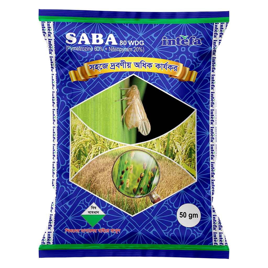সাবা ৮০ ডব্লিউডিজি একটি পানিতে দ্রবণীয় স্পর্শক, পাকস্থলী, এন্টিফিডার, ট্রান্সলেমিনার ও প্রবহমান গুণসম্পন্ন পরিবেশ বান্ধব স্বল্পমাত্রার কীটনাশক।