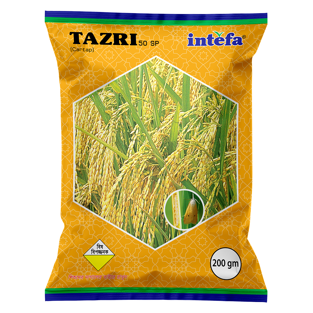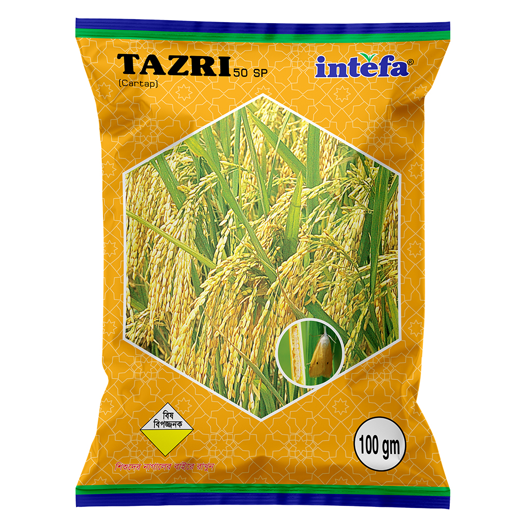 প্রতি লিটার তাজরী ৫০ এসপি-এ ৫০০ গ্রাম সক্রিয় উপাদান কারটাপ বিদ্যমান।